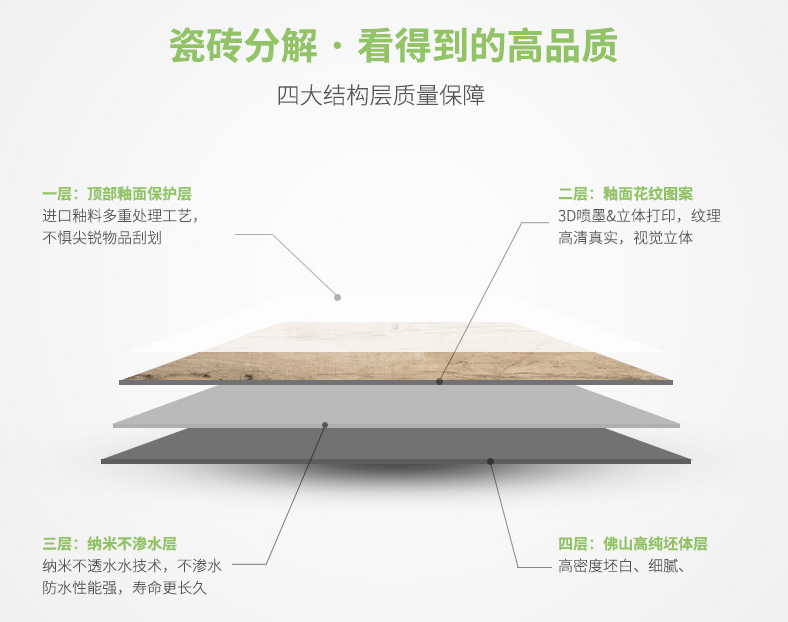 木紋磚具有逼真度高;本身具有阻燃,不腐蝕的特點,是綠色、環保型建材;產品使用壽命長,耐磨,無需像木制產品那樣周期性地打蠟保養等特征。